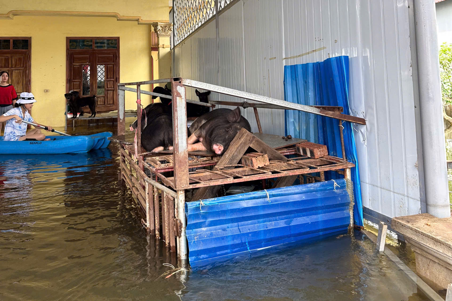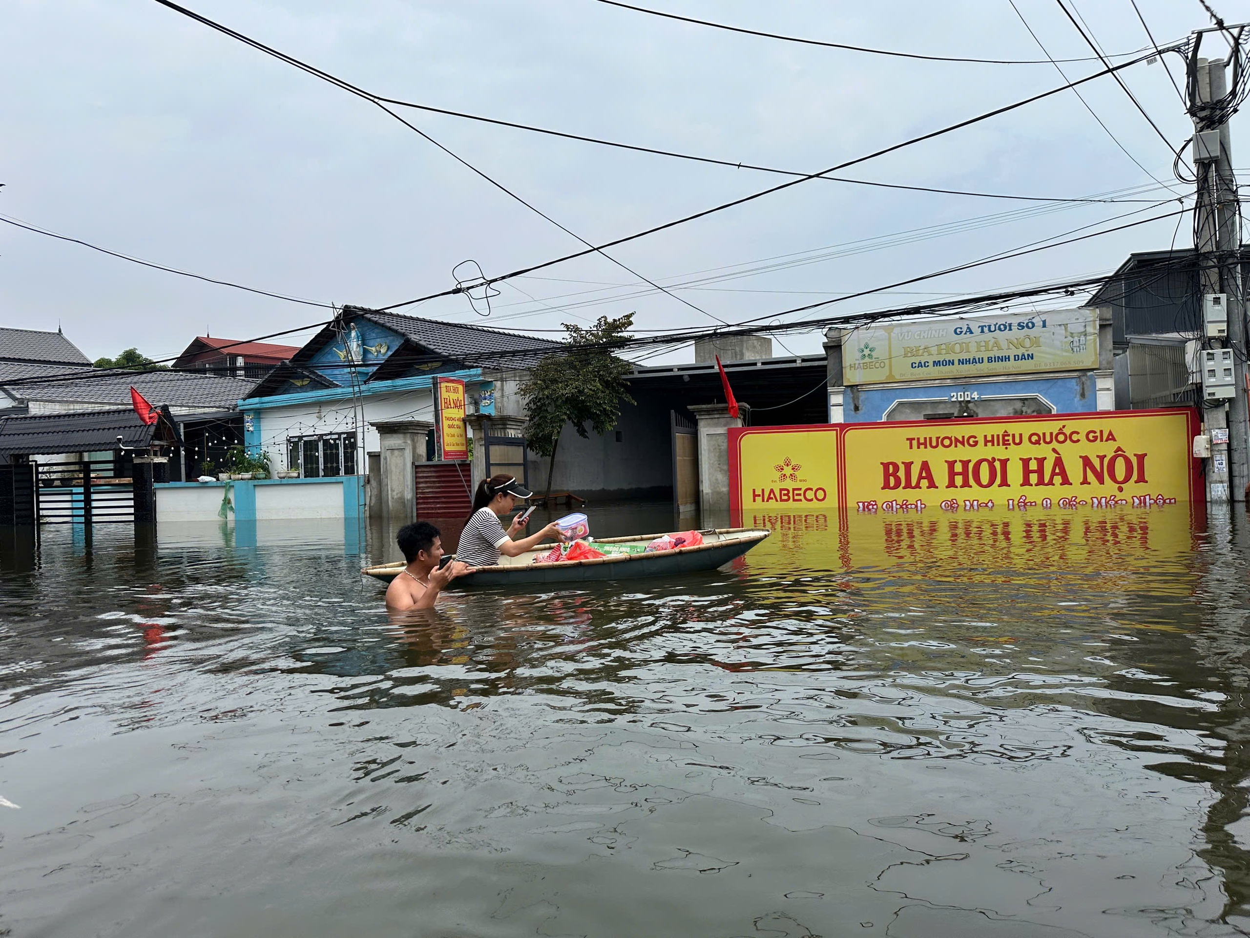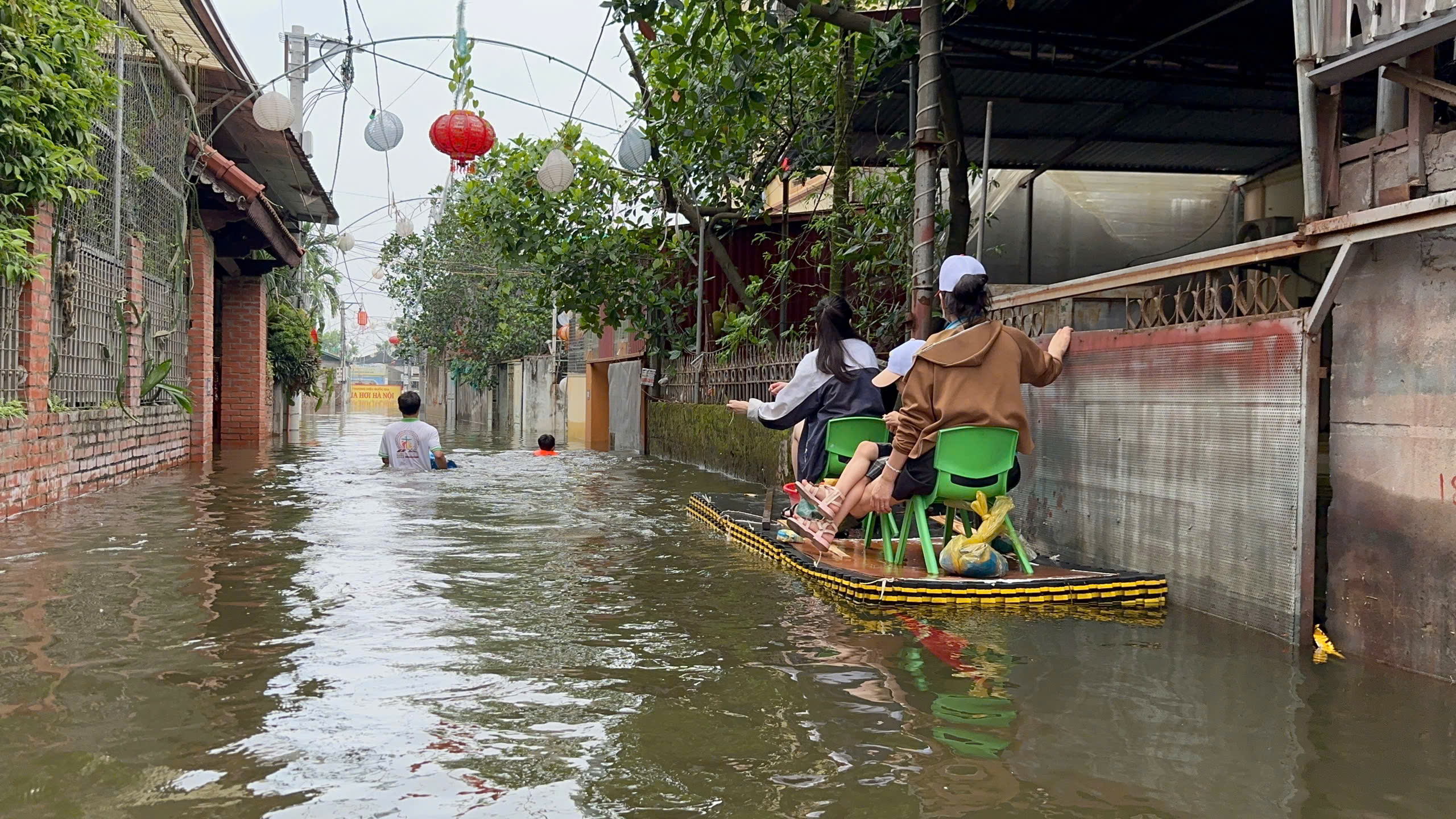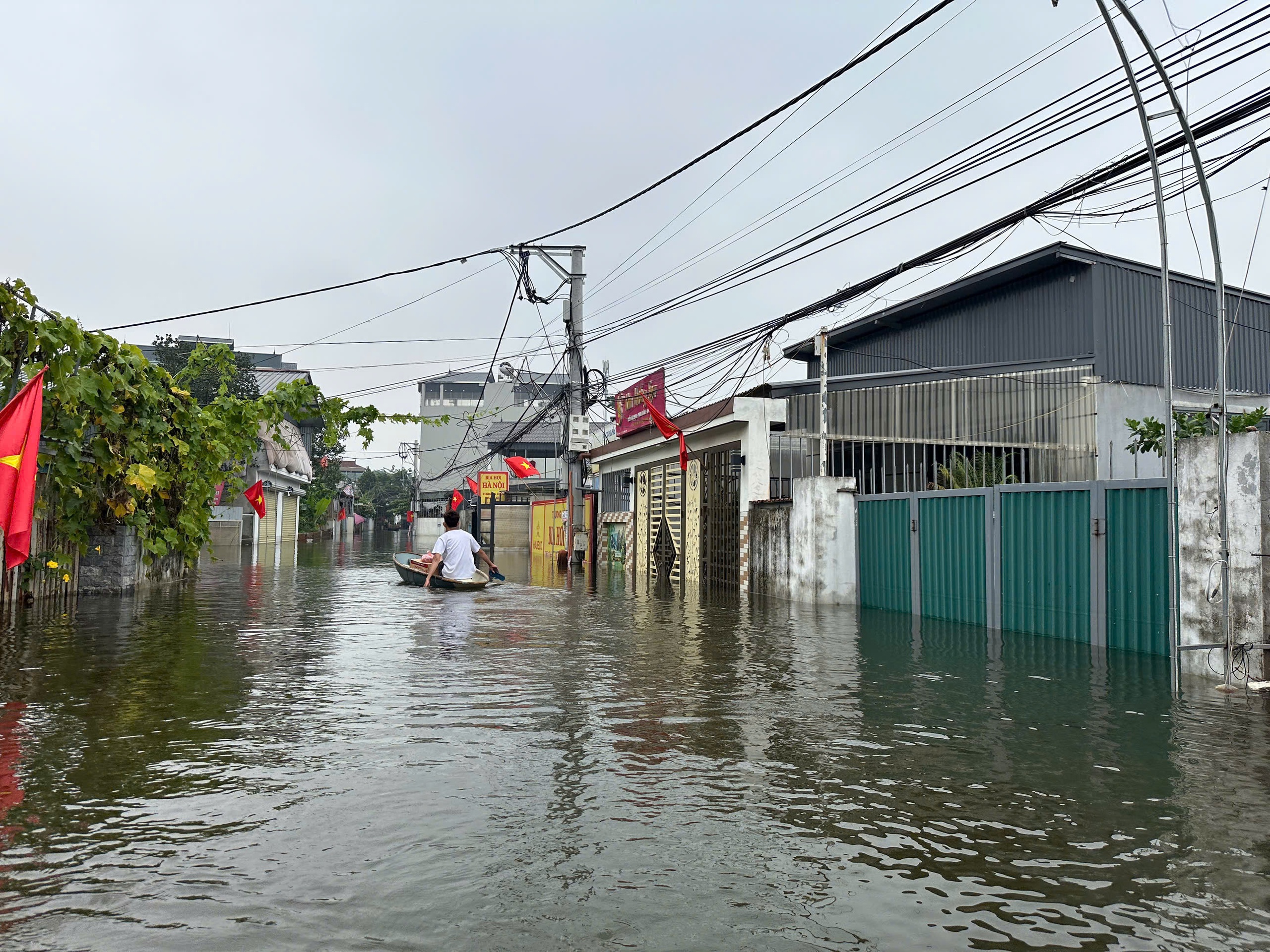 Ngập lụt trên địa bàn xã Nội Bài (Hà Nội) khiến cuộc sống của người dân gặp khó khăn.