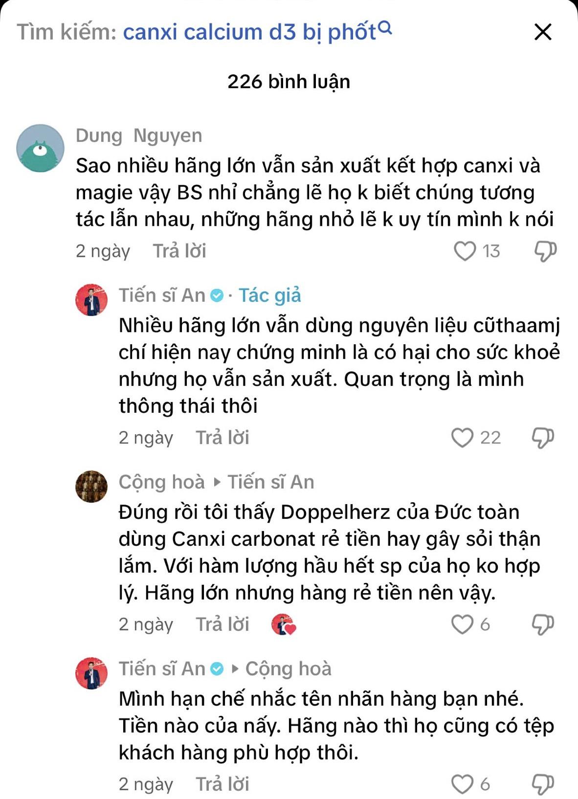 Đáng chú ý, trong phần bình luận dưới các video, nhiều tài khoản mạng xã hội đã trực tiếp nhắc đến tên thương hiệu và sản phẩm cụ thể, khiến các phát ngôn trên không chỉ dừng ở tranh luận chuyên môn mà còn tác động đến nhận thức của người tiêu dùng và ảnh hưởng trực tiếp đến doanh nghiệp và nhãn hàng.