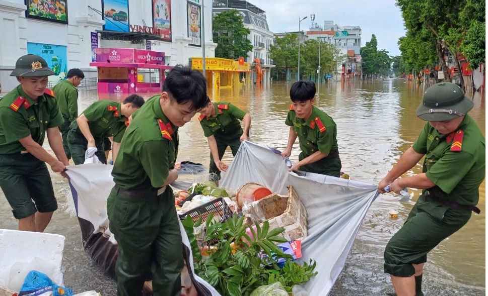 Nước rút tới đâu, lực lượng Bộ đội, Công an giúp dân dọn dẹp, vệ sinh môi trường đến đó. Nhiều nhà hảo tâm đã chuẩn bị những suất ăn miễn phí, kịp thời tiếp tế cho người dân các khu vực còn bị nước lũ chia cắt