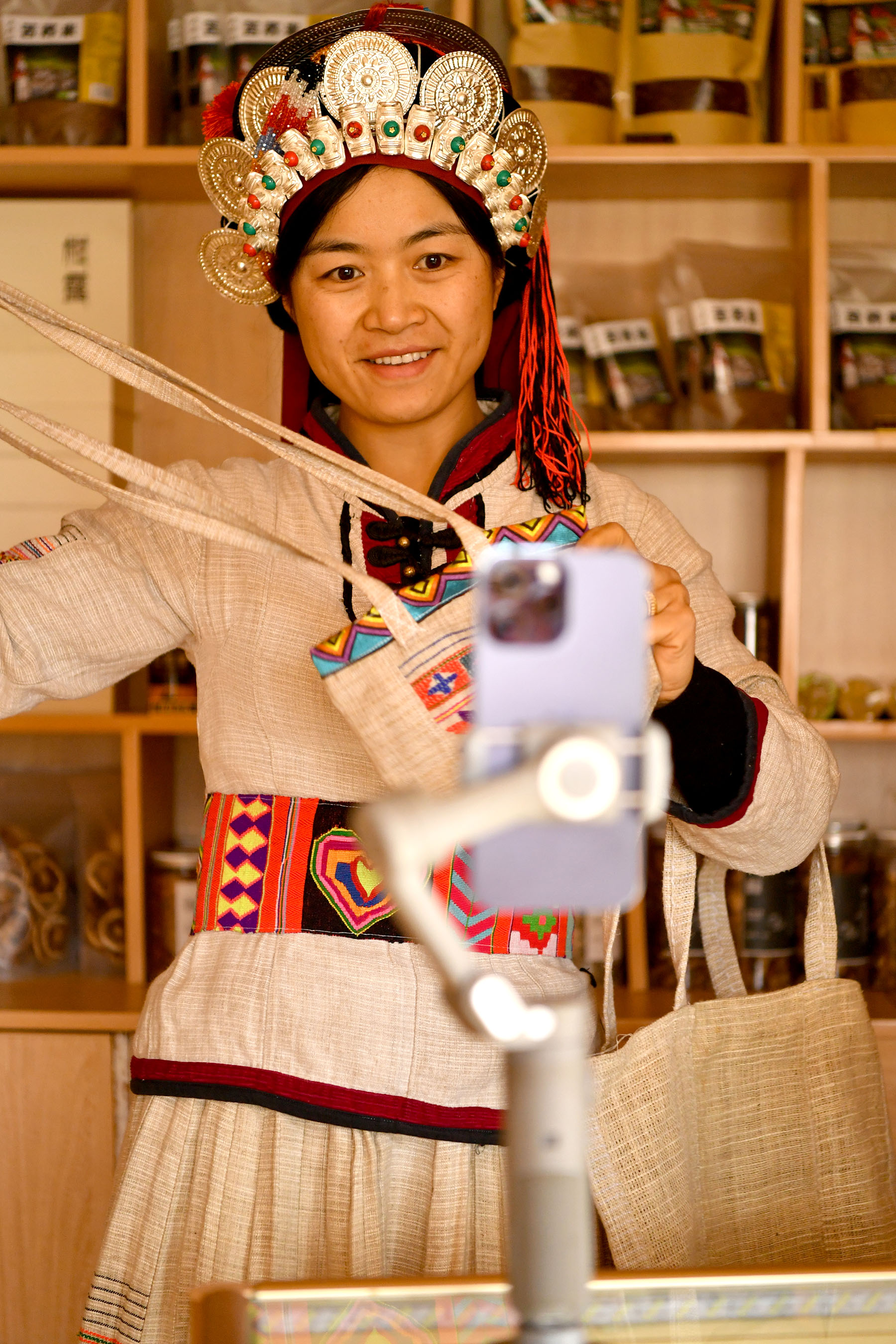 Được truyền cảm hứng từ những người dân trong làng, Jima, 22 tuổi, gần đây đã bắt đầu công việc livestream giới thiệu về ngôi làng cổ Eya của mình và hiện đã thu hút được 2.000 người theo dõi. (Ảnh: ZHONG YUAN / CHINA DAILY)