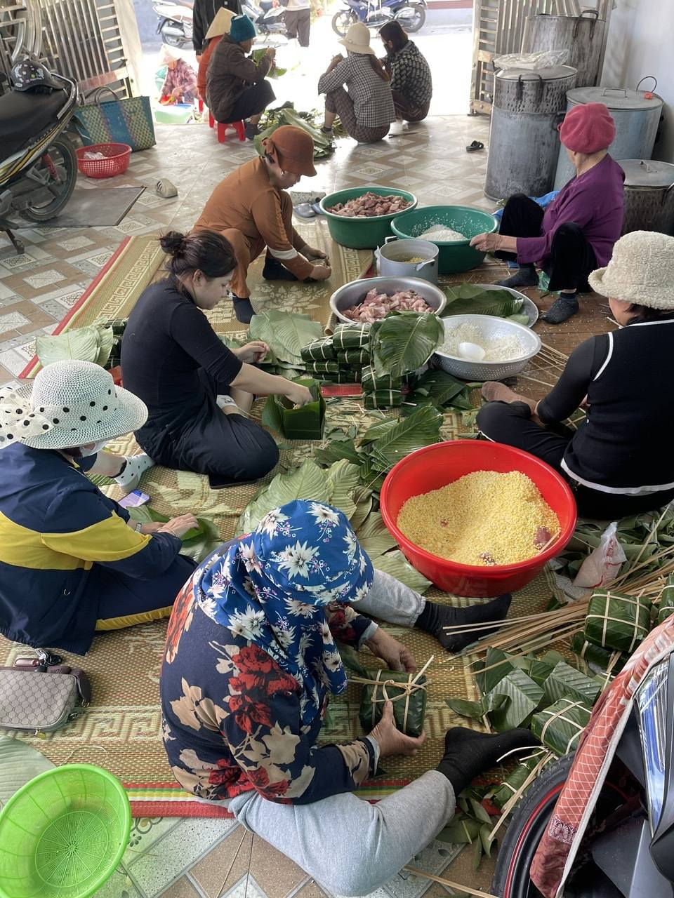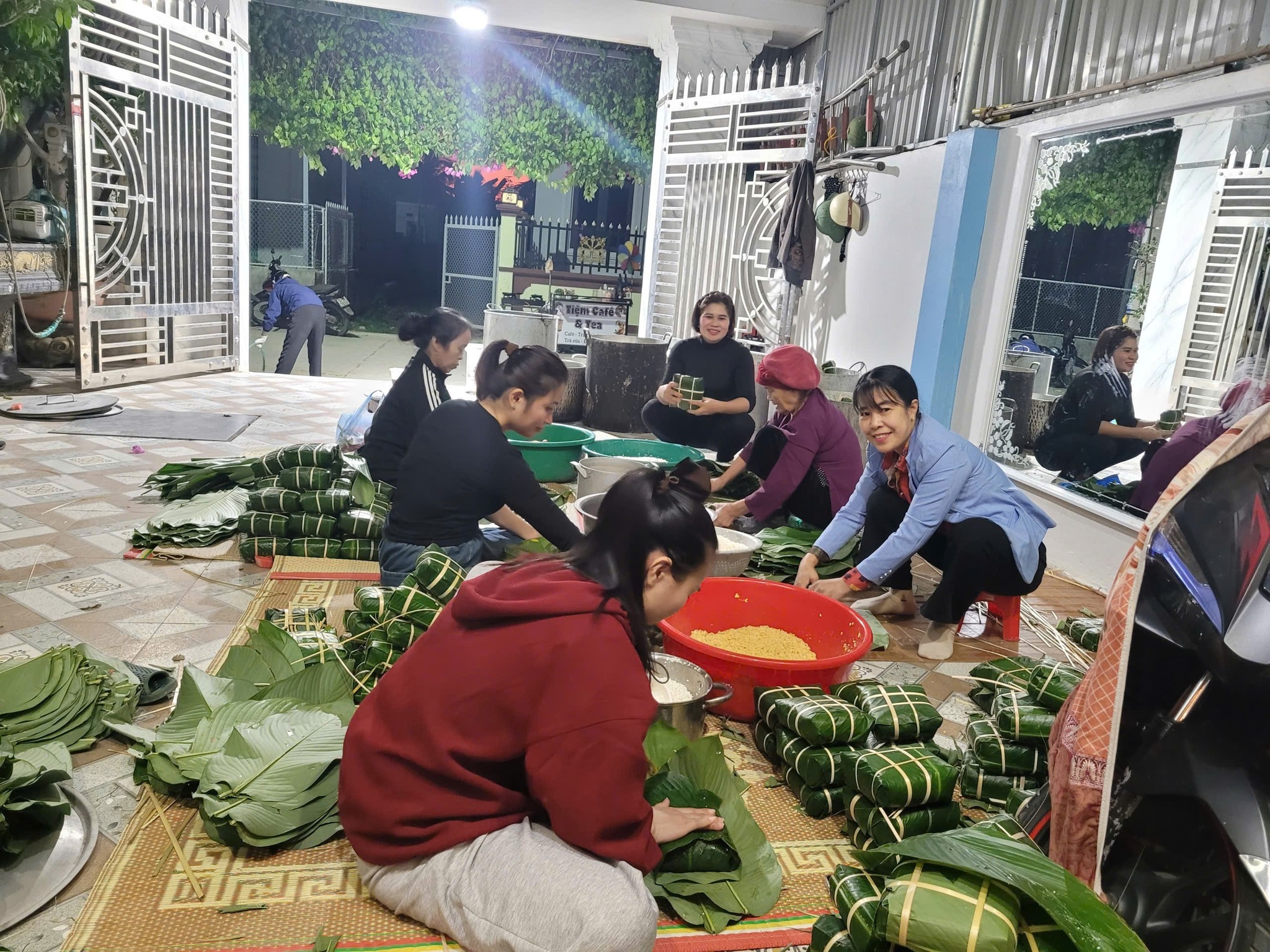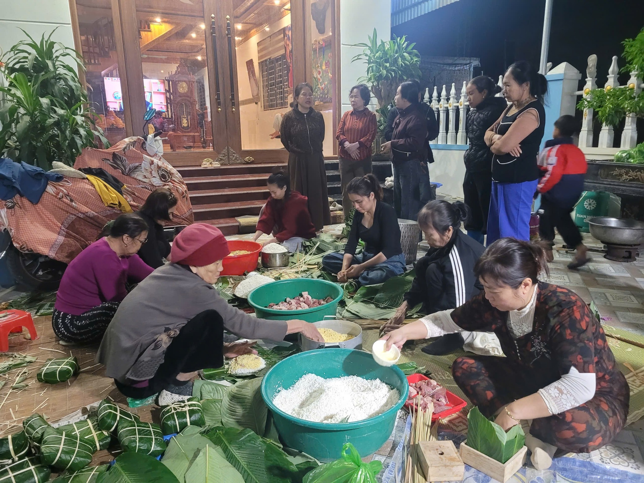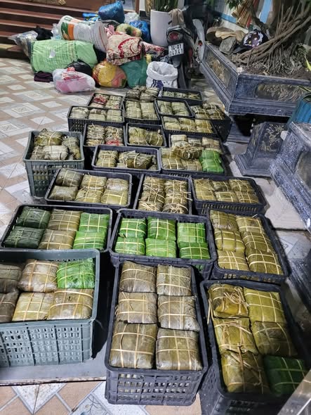 Những chiếc bánh chưng được gói trong đêm để sẻ chia kịp thời, giúp bà con vùng lũ vượt qua khó khăn