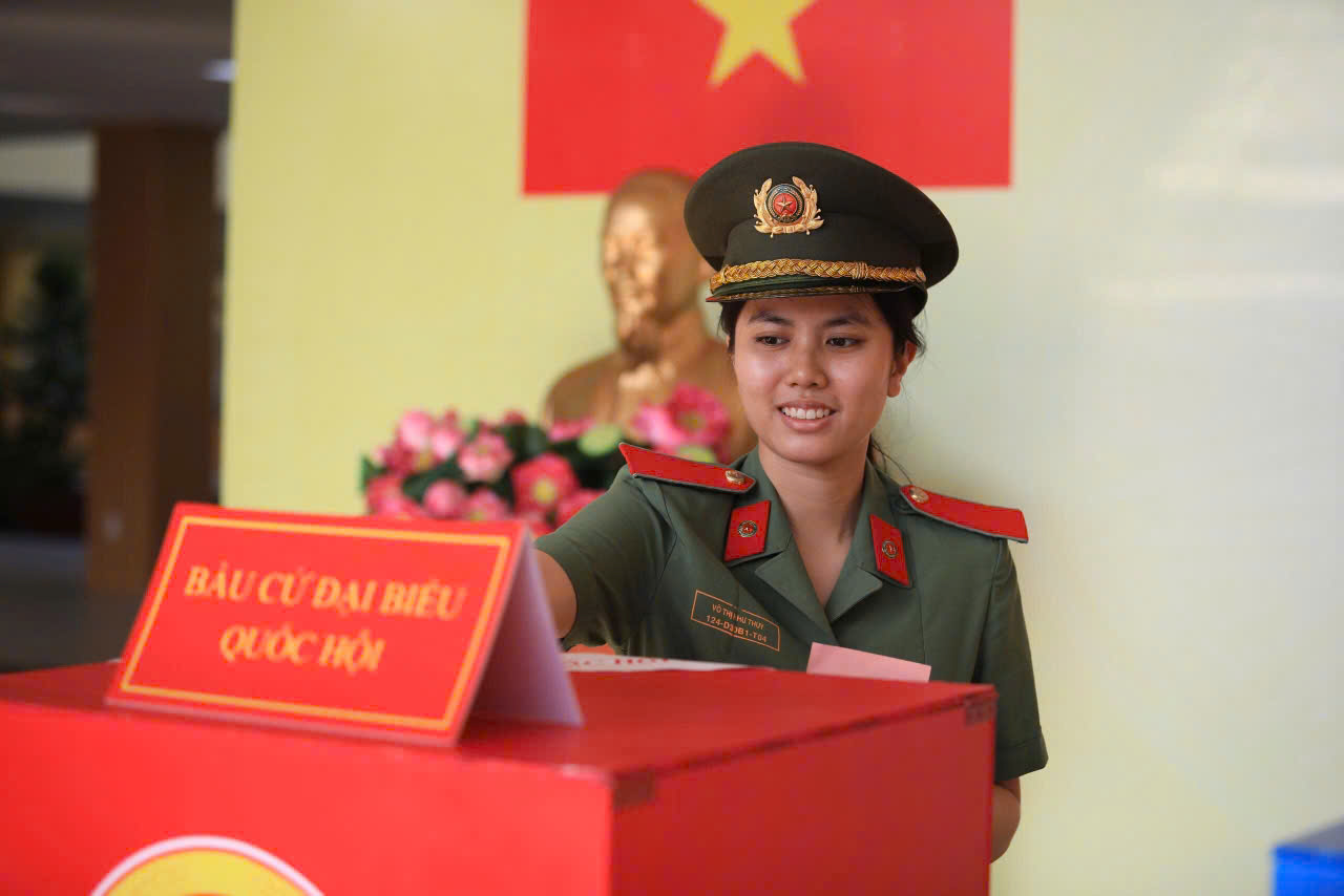 Các nữ cử tri của Trường đại học An ninh nhân dân tham gia bầu cử. Nguồn: Công an phường Linh Xuân, TPHCM