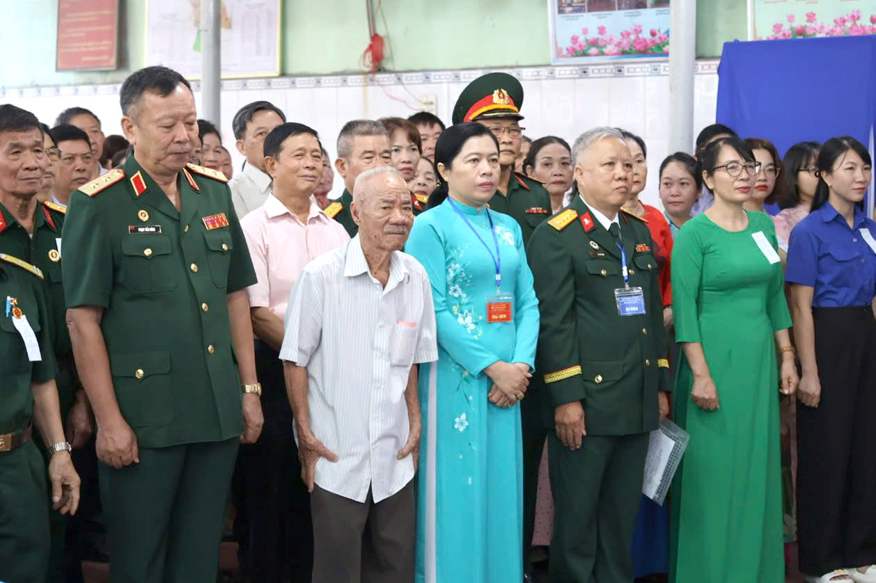 Mẹ Việt Nam anh hùng Trần Thị Hồng tham dự lễ khai mạc và bỏ lá phiếu đầu tiên tại khu vực bỏ phiếu số 23, phường Minh Phụng (TPHCM)