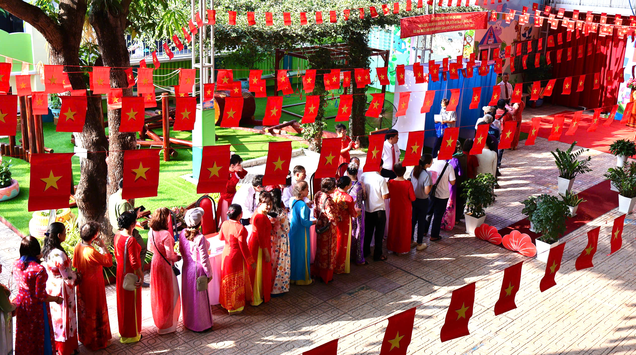 Nhiều cán bộ, hội viên, phụ nữ TPHCM nô nức tham gia bầu cử mặc áo dài truyền thống khi tham gia ngày hội lớn của đất nước. Hình ảnh tà áo dài duyên dáng tại các điểm bỏ phiếu không chỉ tôn vinh nét đẹp trang phục dân tộc mà còn góp phần lan tỏa không khí phấn khởi, trang trọng trong ngày bầu cử.