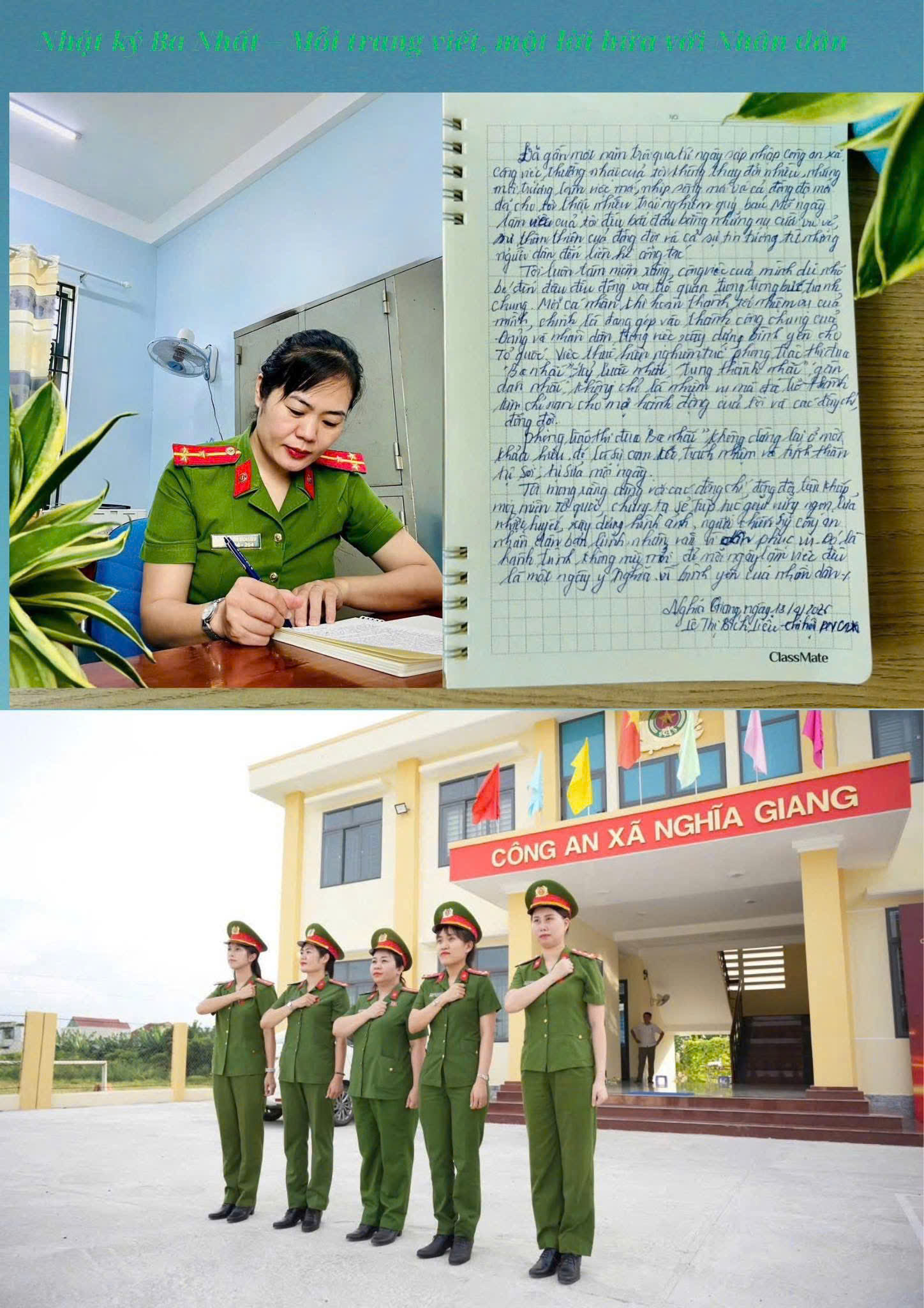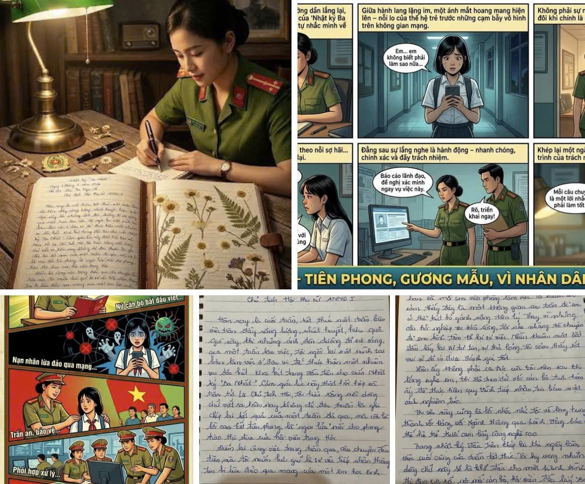 Qua từng dòng chữ, người đọc cảm nhận rõ bản lĩnh chính trị vững vàng, tinh thần kỷ luật nghiêm minh và trái tim nhân ái của người nữ chiến sĩ công an nhân dân. Những trang viết ấy không chỉ là sự ghi chép mà còn là hành trình tự soi, tự sửa, tự hoàn thiện của mỗi cá nhân.