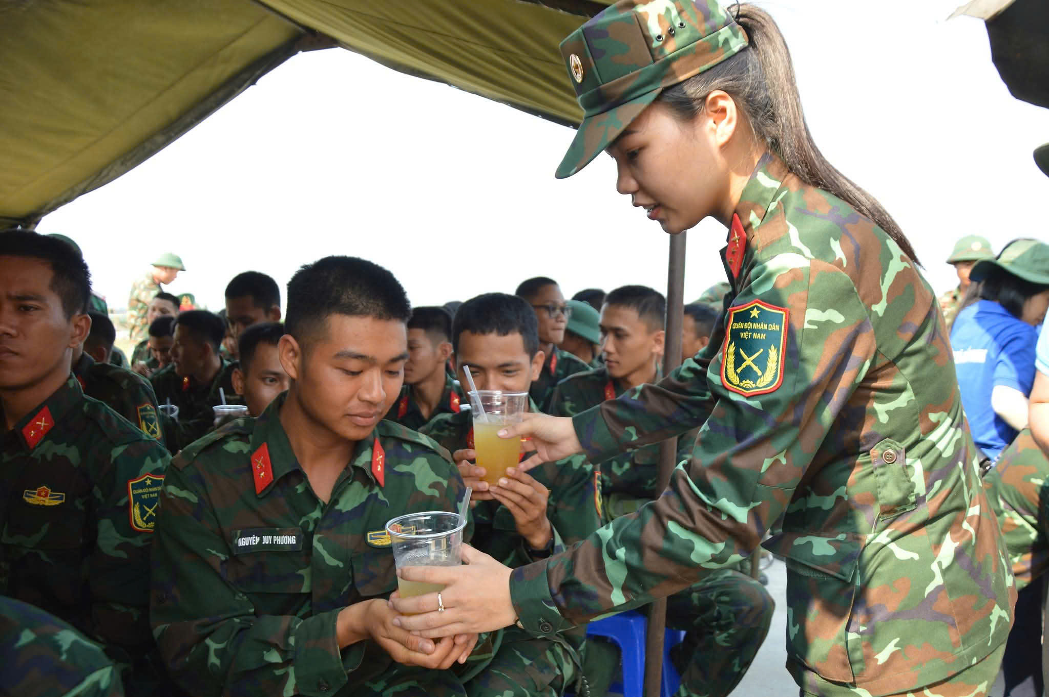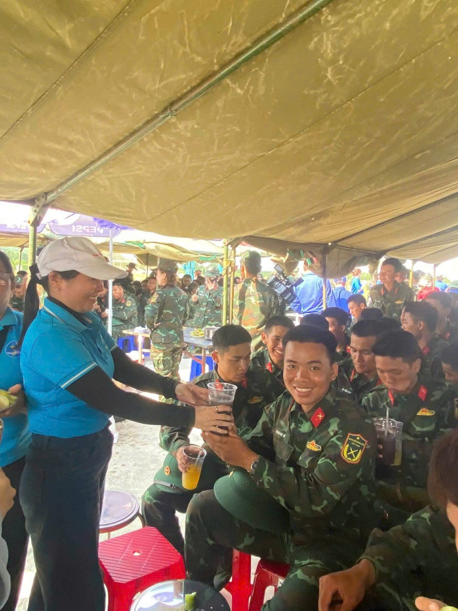 Hình ảnh những người mẹ, người chị ân cần trao từng ly nước không chỉ giúp xua tan cái nóng oi ả mà còn tiếp thêm nghị lực cho các chiến sĩ trẻ. Trong khoảnh khắc ngắn ngủi giữa giờ nghỉ, sự quan tâm ấy trở thành nguồn động viên tinh thần quý giá, tiếp sức để các anh "vượt nắng, thắng mưa", hoàn thành tốt nhiệm vụ huấn luyện.
