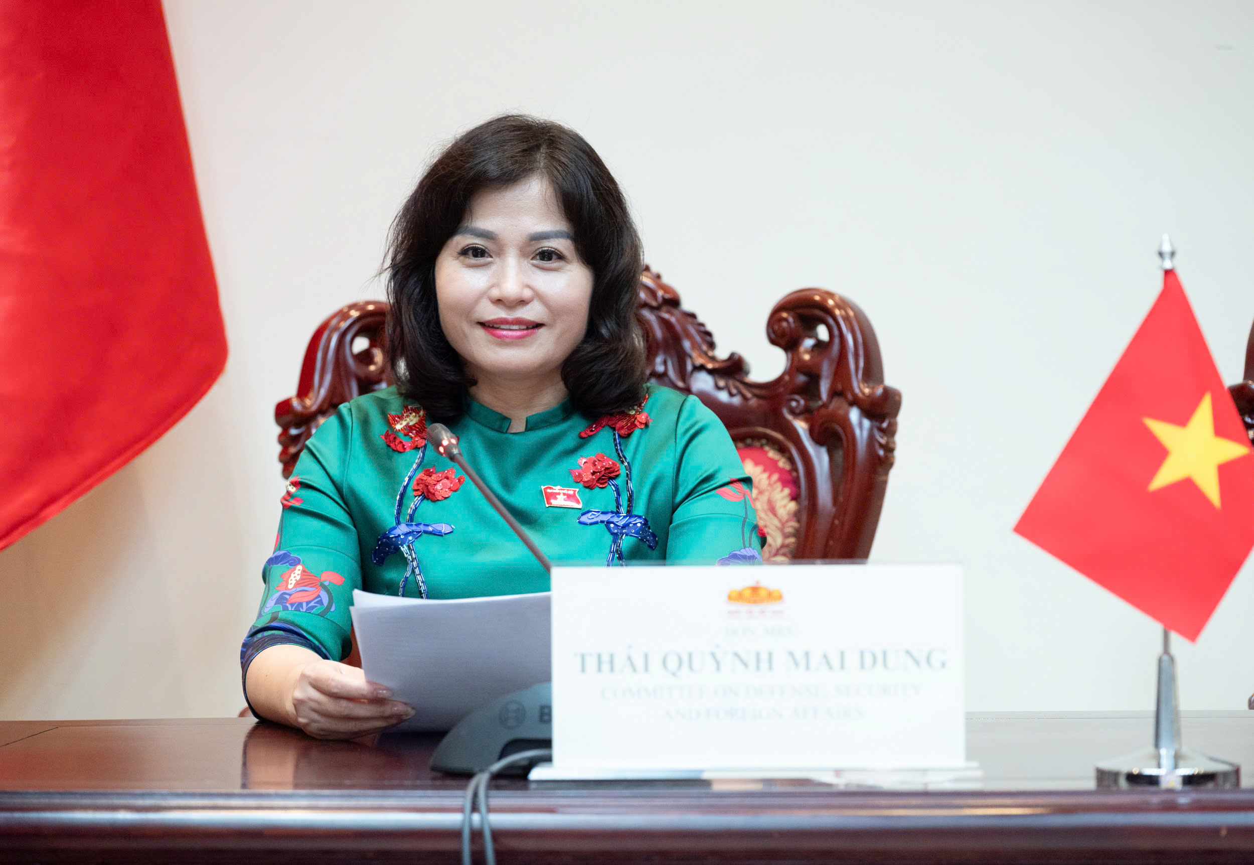 Đoàn Việt Nam tham dự phiên họp có bà Thái Quỳnh Mai Dung (ĐBQH hoạt động chuyên trách tại Ủy ban Quốc phòng, An ninh và Đối ngoại) và bà Nguyễn Thanh Cầm (ĐBQH hoạt động chuyên trách tại Ủy ban Văn hóa và Xã hội).