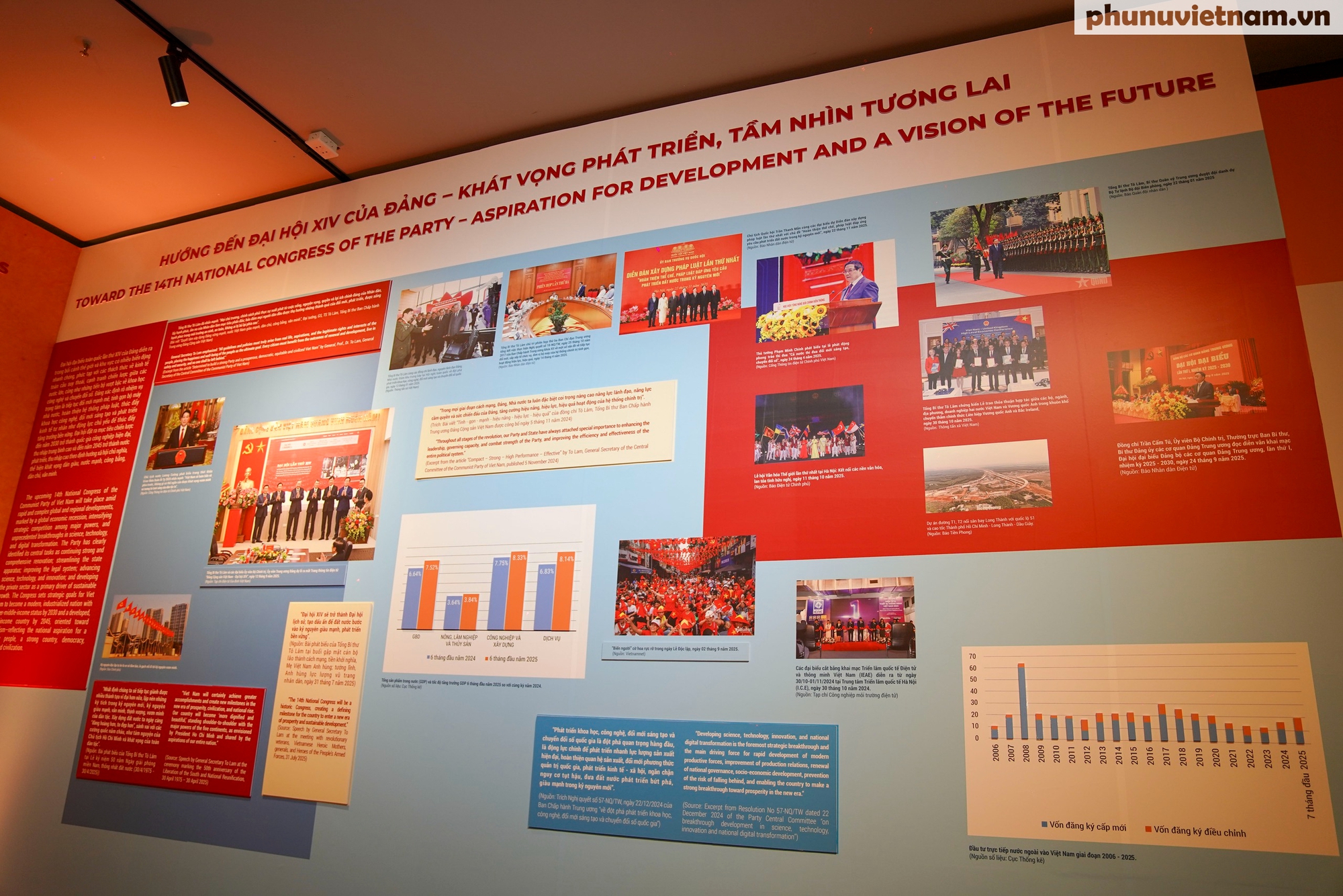 Khép lại hành trình là Phần III “Hướng tới Đại hội XIV – Khát vọng phát triển, tầm nhìn tương lai” với thiết kế tươi sáng, hiện đại. Khu vực này trưng bày biểu đồ, hình ảnh thể hiện quyết tâm, niềm tin và khát vọng của toàn Đảng, toàn quân, toàn dân trong kỷ nguyên phát triển mới.
