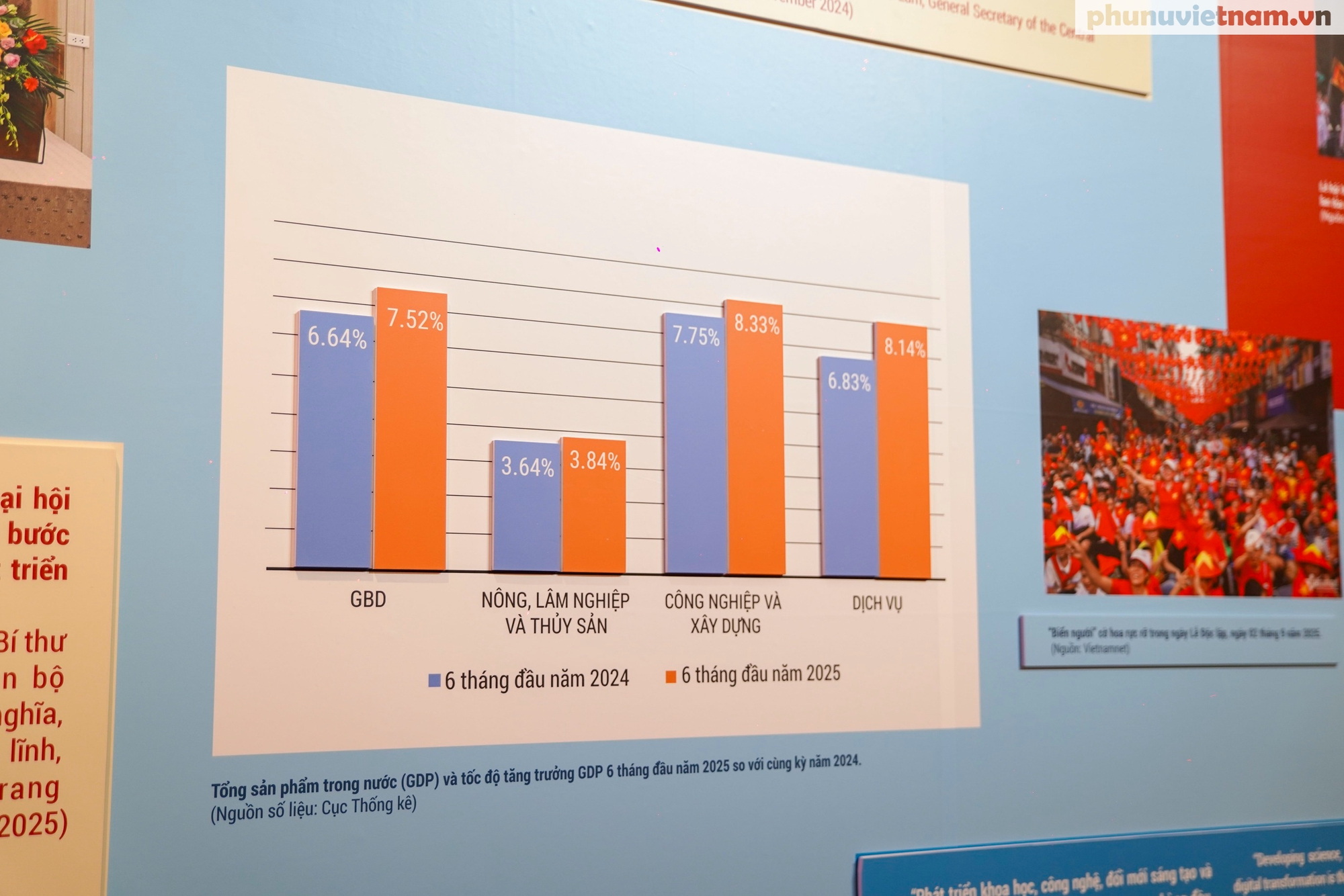 Đồng thời, không gian trưng bày còn giới thiệu Chủ tịch Hồ Chí Minh và các Tổng Bí thư qua từng thời kỳ được bố trí nổi bật, giúp người xem hình dung rõ mạch kế thừa, phát triển trong sự lãnh đạo của Đảng.