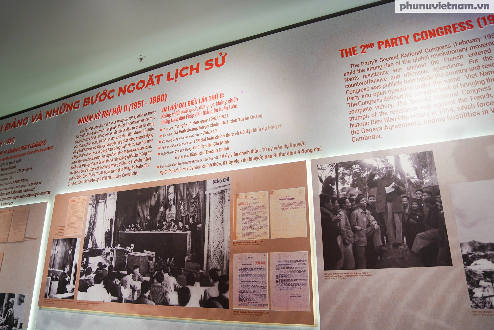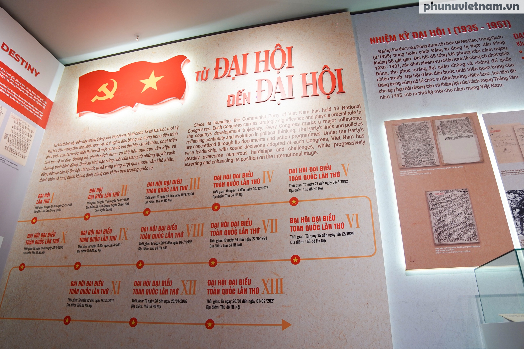 Mỗi nhiệm kỳ được trình bày thống nhất theo 2 cụm nội dung: Văn kiện tại Đại hội và những thành tựu nổi bật giai đoạn sau Đại hội, giúp khách tham quan có cái nhìn toàn diện, liền mạch.