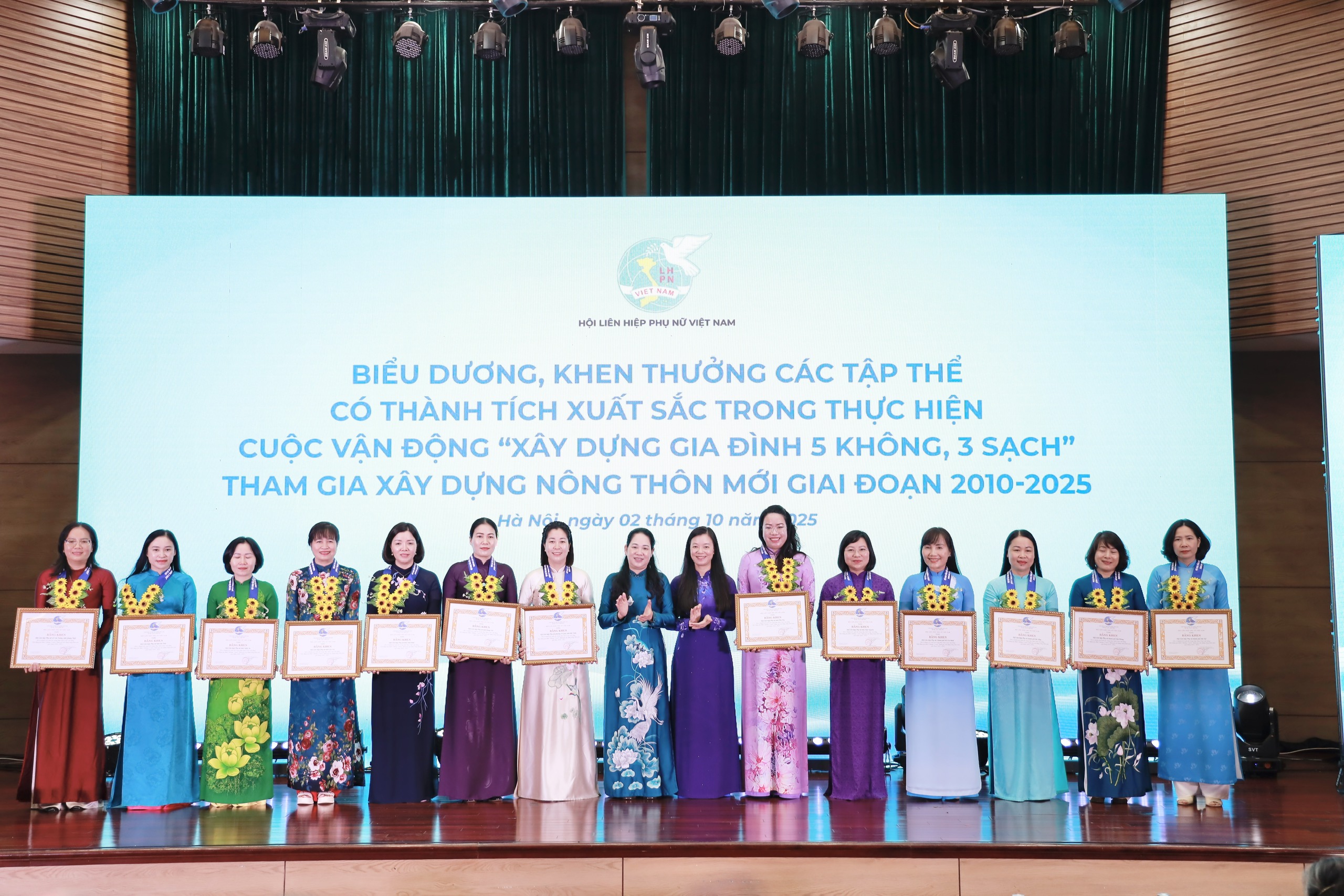 Sáng 2/10, TƯ Hội LHPN Việt Nam tổ chức Hội nghị tổng kết 15 năm thực hiện Cuộc vận động "Xây dựng gia đình 5 không, 3 sạch" tham gia xây dựng nông thôn mới giai đoạn 2010 - 2025; sơ kết Đề án 938 giai đoạn 2022 - 2025 và Chương trình Mẹ đỡ đầu giai đoạn 2021 - 2025 theo hình thức trực tiếp và trực tuyến tại 34 tỉnh, thành phố.