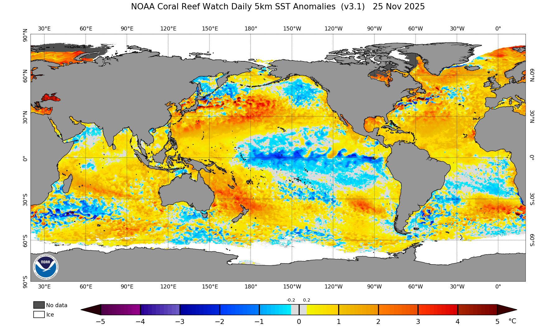 Tổ chức Khí tượng Thế giới (WMO) nhận định năm 2025 có thể là năm nóng thứ hai hoặc thứ ba trong lịch sử, ngay sau khi năm 2024 được ghi nhận là năm nóng nhất. Nhiệt độ trung bình gần bề mặt Trái đất trong giai đoạn từ tháng 1 đến tháng 8/2025 cao hơn khoảng 1,42°C so với mức trung bình thời kỳ tiền công nghiệp (1850-1900). Hồ sơ của Cơ quan Hàng không và Vũ trụ Hoa Kỳ (NASA) cũng cho biết nhiệt độ toàn cầu hiện ấm hơn khoảng 1,47°C so với thời kỳ tiền công nghiệp.