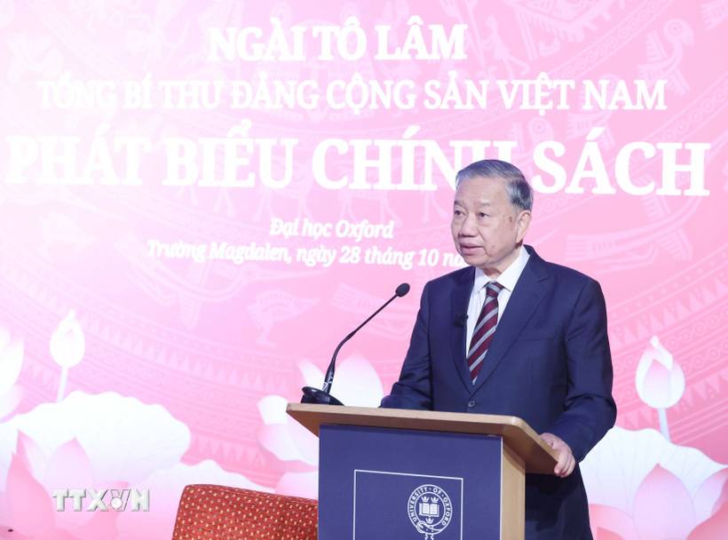 Theo đặc phái viên TTXVN, trong khuôn khổ chuyến thăm chính thức Liên hiệp Vương quốc Anh và Bắc Ireland, chiều 28/10 (giờ địa phương), Tổng Bí thư Tô Lâm và Đoàn đại biểu cấp cao Việt Nam đã gặp Ban lãnh đạo Đại học Oxford, Vương quốc Anh. Nhân dịp này, Tổng Bí thư Tô Lâm đã phát biểu chính sách trước các giáo sư, giảng viên, nhà nghiên cứu và đông đảo sinh viên, bạn bè của Việt Nam tại Đại học Oxford.