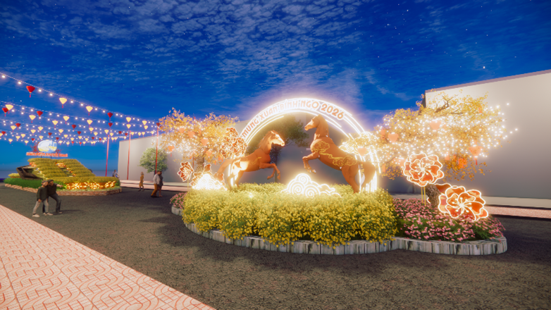 Bên cạnh đó, không gian Tết truyền thống sẽ gồm tiểu cảnh theo mô tuýp ánh dương chiếu sáng, mang đủ màu sắc của hoa mai và các loại hoa đủ màu sắc cùng với mô hình Ngựa - biểu tượng linh vật của năm Bính Ngọ. Qua đó tạo nên một màu của mùa Xuân, màu của Tết đến.