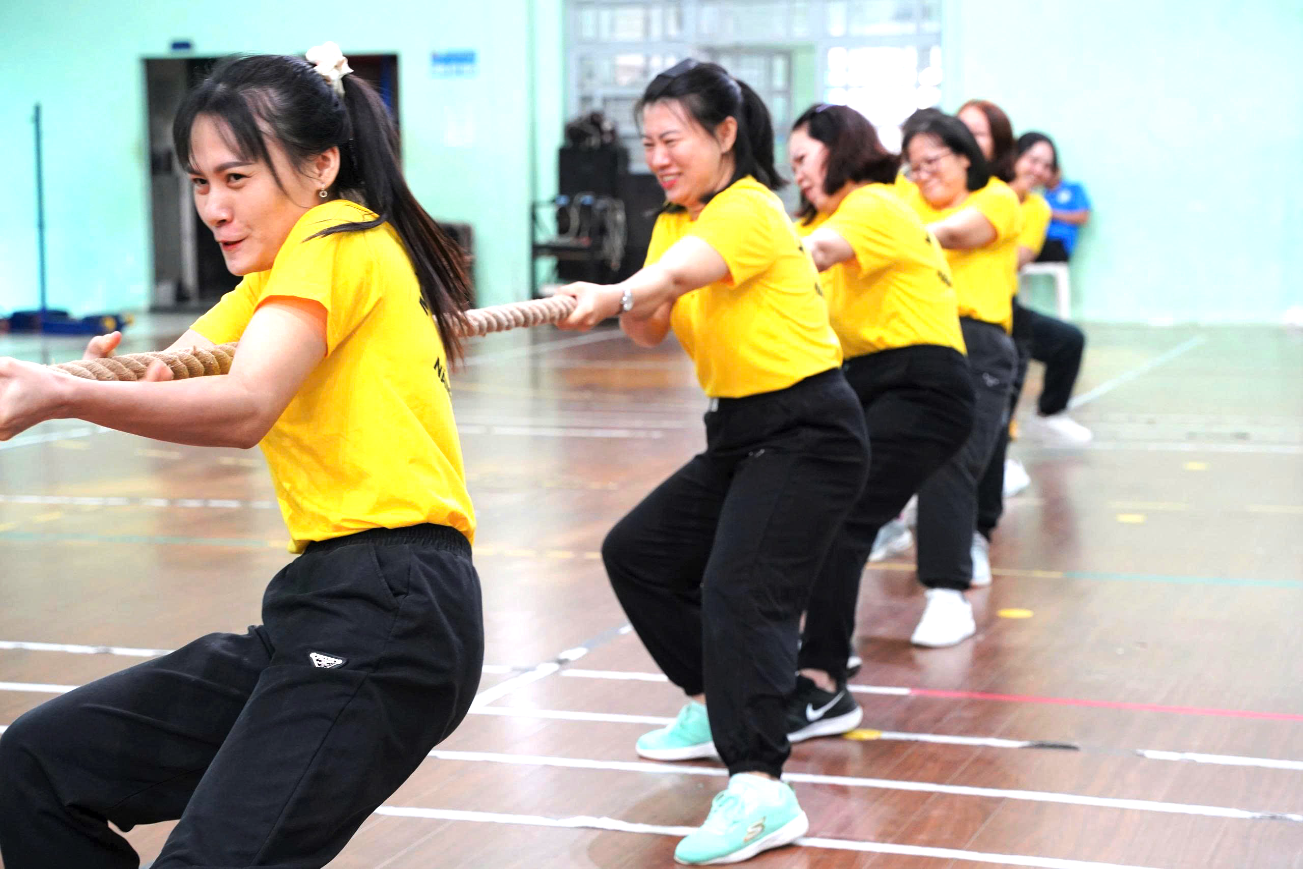 Các vận động viên nữ tham gia thi kéo co với tinh thần quyết tâm cao ngay trong buổi khai mạc