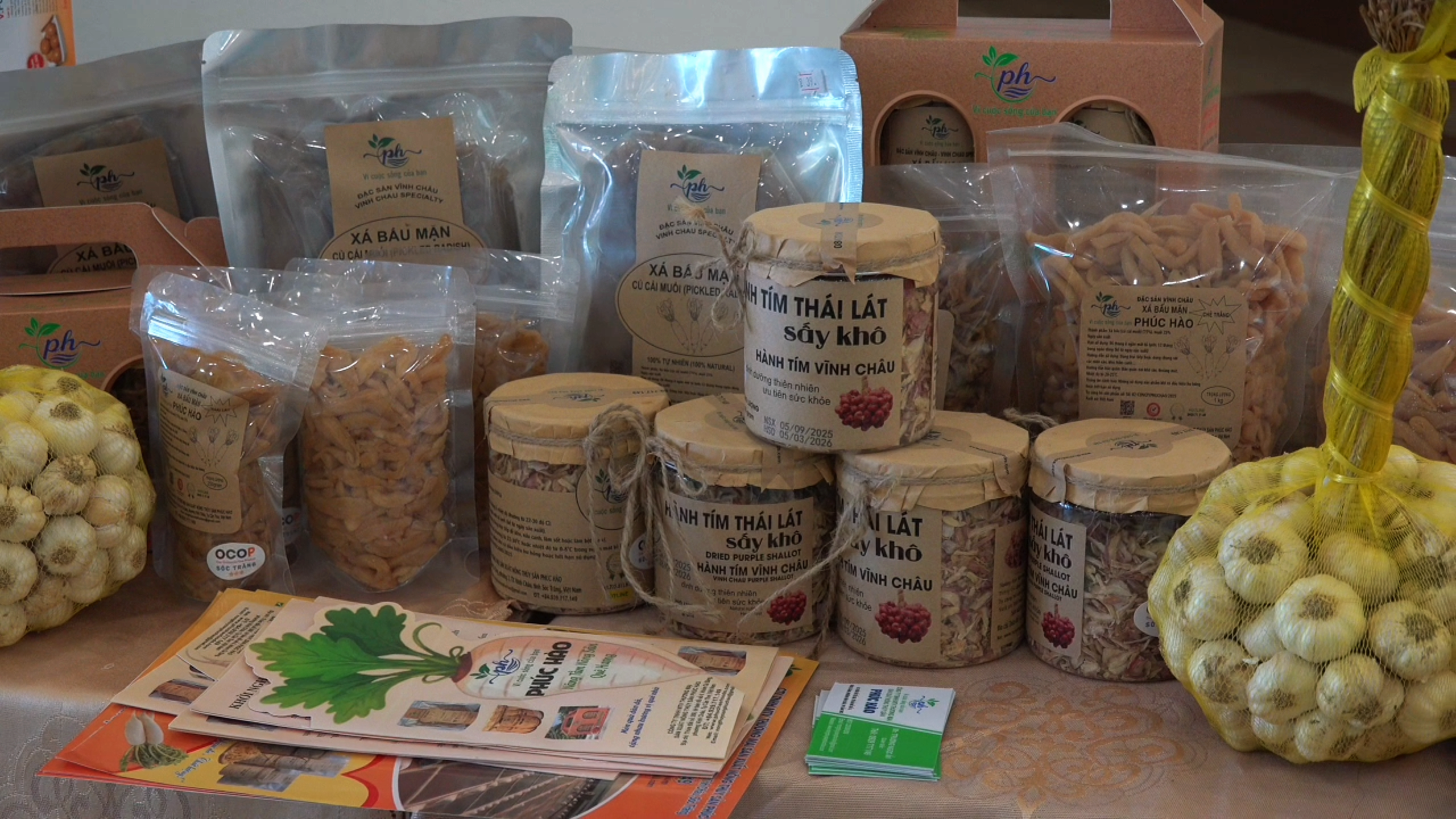 Các sản phẩm rau củ quả đạt chuẩn OCOP được trưng bày tại Hội nghị