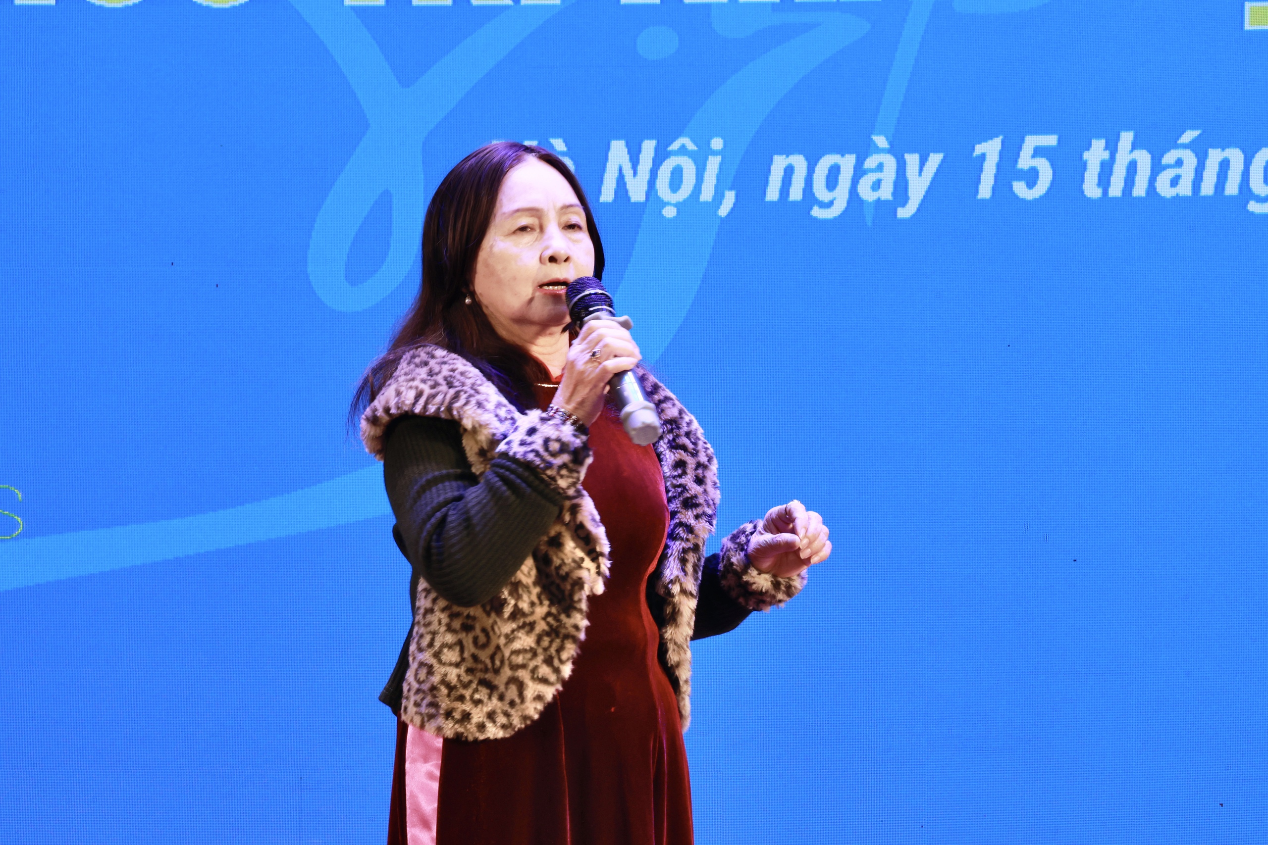 Bà Nguyễn Thị Oanh, nguyên Phó Chủ tịch Hội LHPN Việt Nam, Trưởng ban liên lạc cán bộ hưu trí TƯ Hội, phát biểu tại chương trình