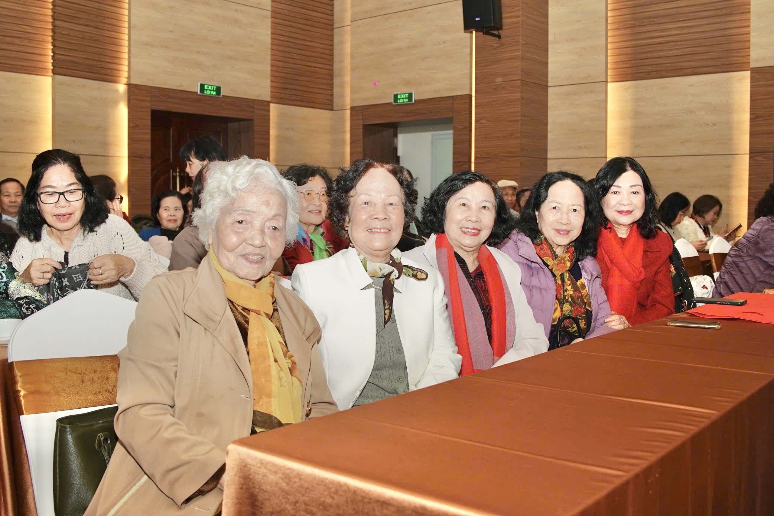 Ủy viên TƯ Đảng, Phó Chủ tịch UBTƯ MTTQ Việt Nam, Chủ tịch Hội LHPN Việt Nam Nguyễn Thị Tuyến (thứ 3 từ phải sang) và Phó Chủ tịch Thường trực Hội LHPN Việt Nam Trần Lan Phương (bìa trái) chúc thọ các cụ hưu trí từ 80 tuổi trở lên