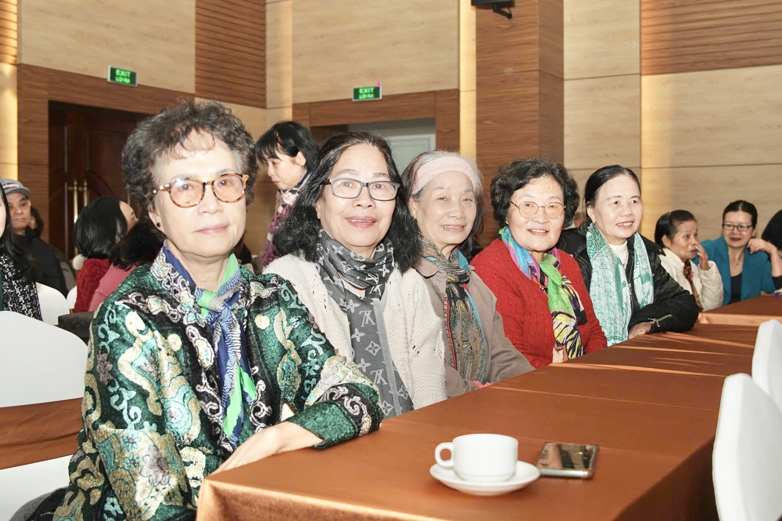 Từ trái qua phải, các cán bộ hưu trí nguyên là Phó Chủ tịch Hội LHPN Việt Nam: Nguyễn Phương Minh, Hoàng Thị Ái Nhiên, Nguyễn Thị Tuyết, Nguyễn Thị Oanh tham dự chương trình