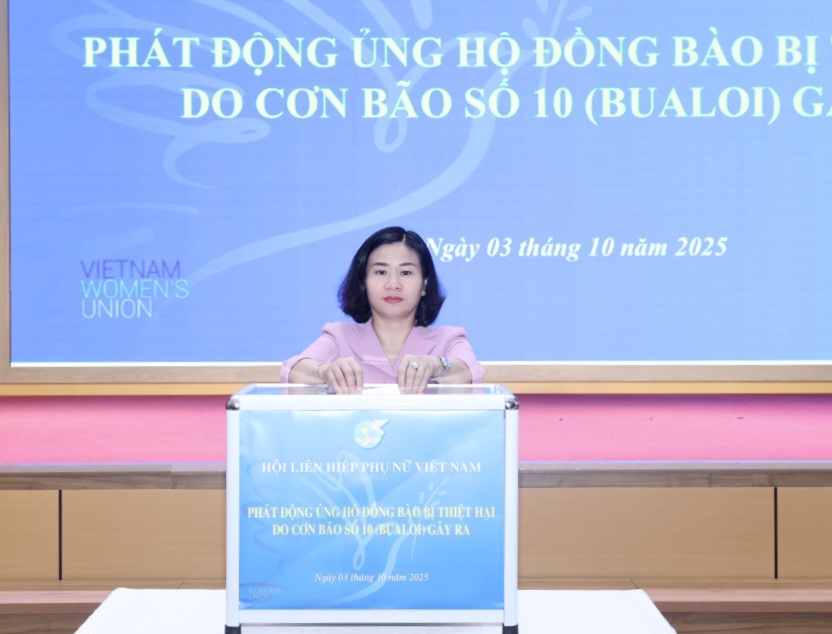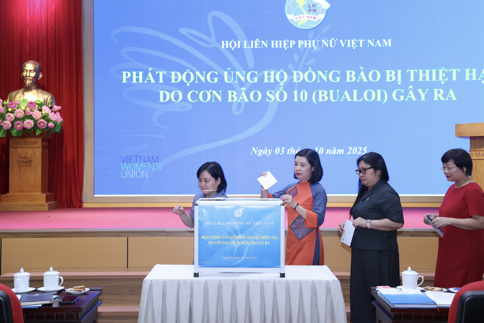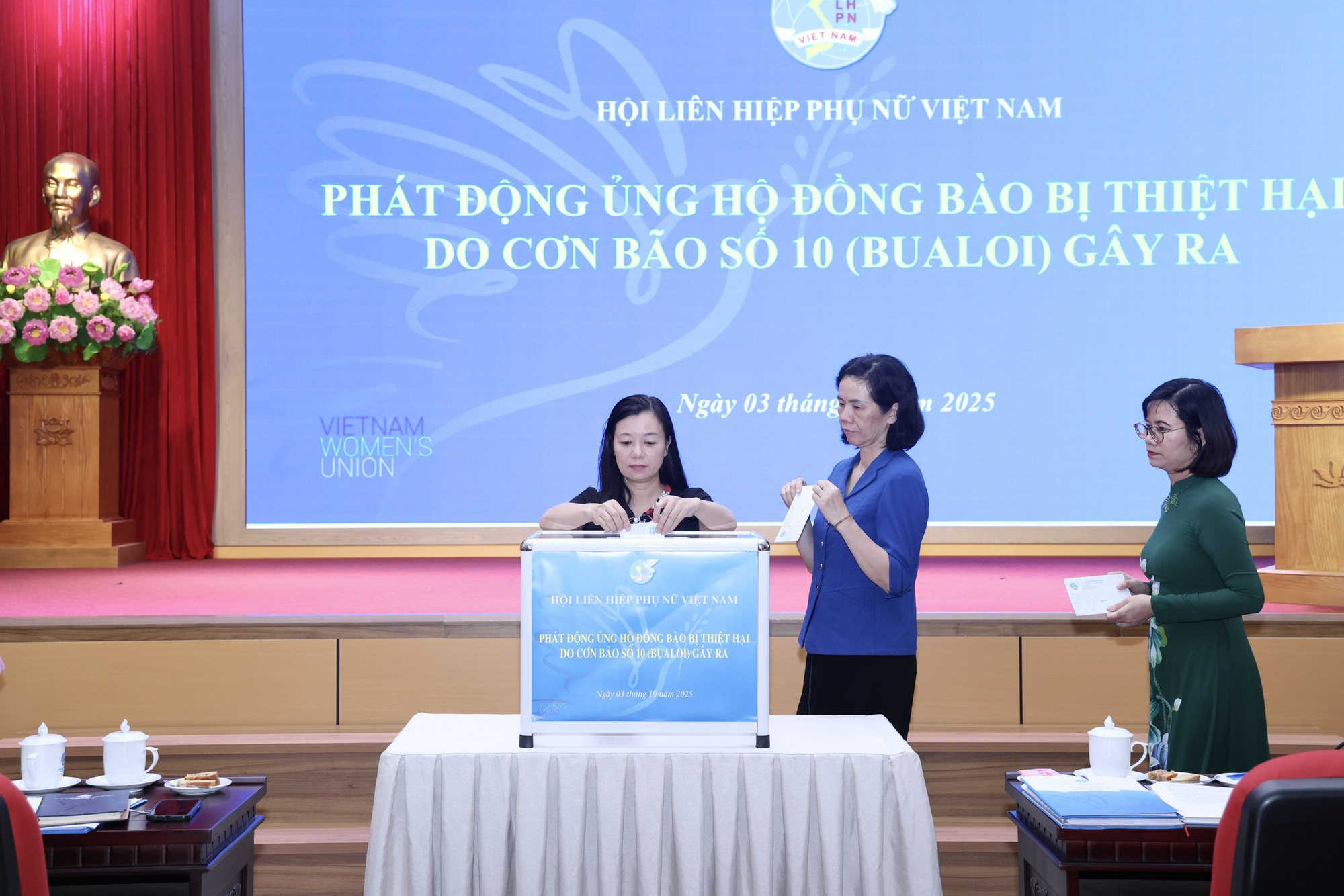 Hưởng ứng lời kêu gọi của Ủy ban Trung ương MTTQ Việt Nam về việc sẻ chia, giúp đỡ về tinh thần, vật chất, góp phần cùng với Đảng, Nhà nước hỗ trợ Nhân dân khắc phục thiệt hại do bão số 10 gây ra, Trung ương Hội LHPN Việt Nam phát động toàn thể cán bộ, công chức, viên chức và người lao động cơ quan Trung ương Hội và cán bộ, hội viên, phụ nữ cả nước tích cực hưởng ứng, chung tay ủng hộ đồng bào các tỉnh, thành phố bị thiệt hại. Mỗi cán bộ, công chức, viên chức cơ quan Trung ương Hội ủng hộ ít nhất 1 ngày lương; người lao động giúp 1 ngày thu nhập.