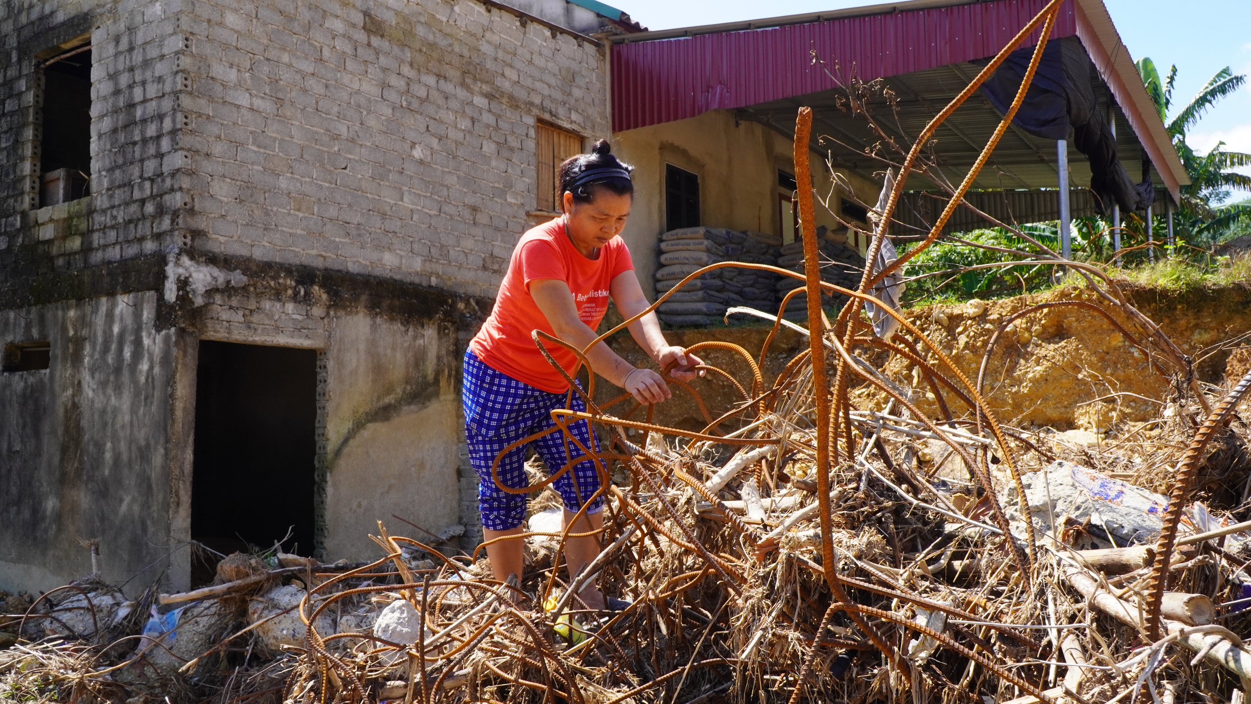 "Trận lũ vừa rồi quét sạch hết, chẳng còn lại cái chi. Nước lớn lắm, bà ở đây có một mình, muốn sang nhà con cũng không sang được. Chỉ biết đứng ở cửa nhìn dòng nước chảy xiết. Cơm thì không nấu được, người run vì sợ. Muốn chạy cũng chẳng đi nổi. Bà có hơn sào ruộng với cái ao nuôi cá, mà nay mất hết, trắng tay. Bà đang nuôi cháu nhỏ ở đây, giờ chẳng còn gì cả. Mấy chục năm nay bà mới thấy một trận lũ to và dữ dằn đến vậy"- bà Tấn, một người dân sống tại khu vực thuộc Chương trình Vùng Thường Xuân, Thanh Hoá, bị ảnh hưởng bởi bão Bualoi, chia sẻ.